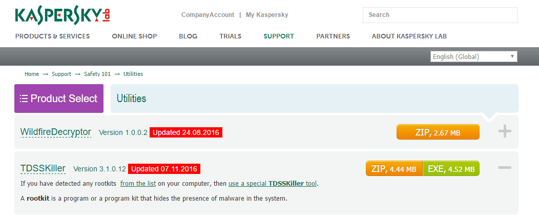 Click on the right to download TDSSkiller.