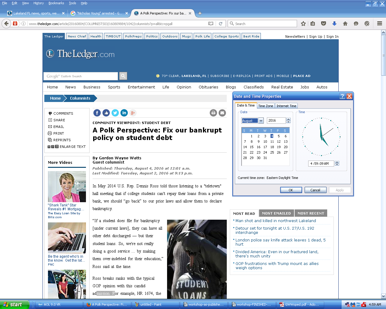 policy on student debt," By Gordon Wayne Watts, Guest columnist,