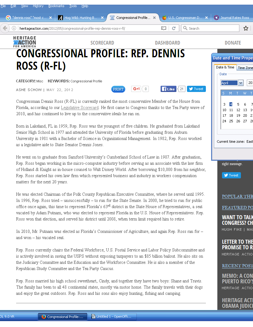 own Congressman, Rep. Dennis A. Ross (R-FL-15th), acts on his stated beliefs, as described in the other, related, news story in the links below: