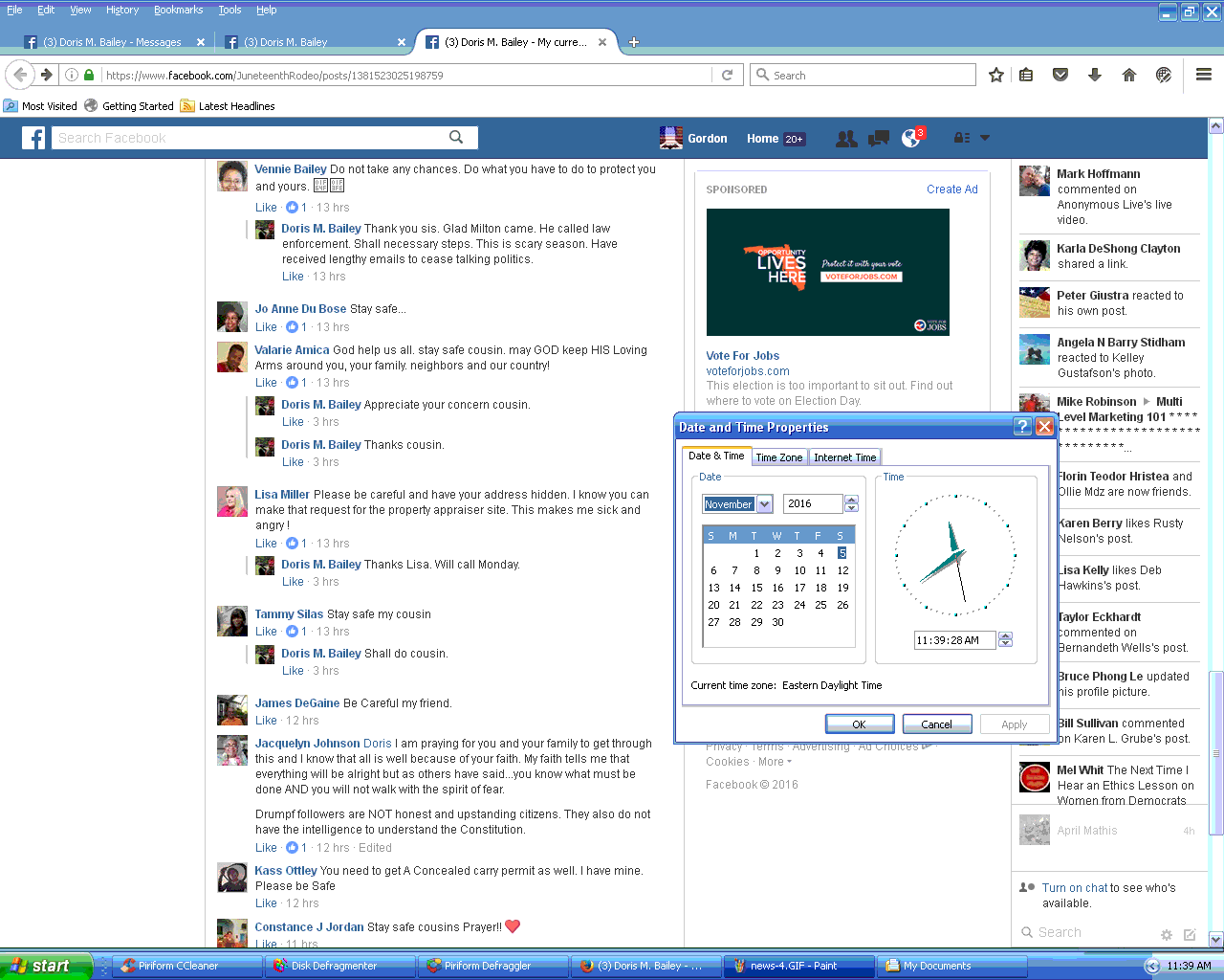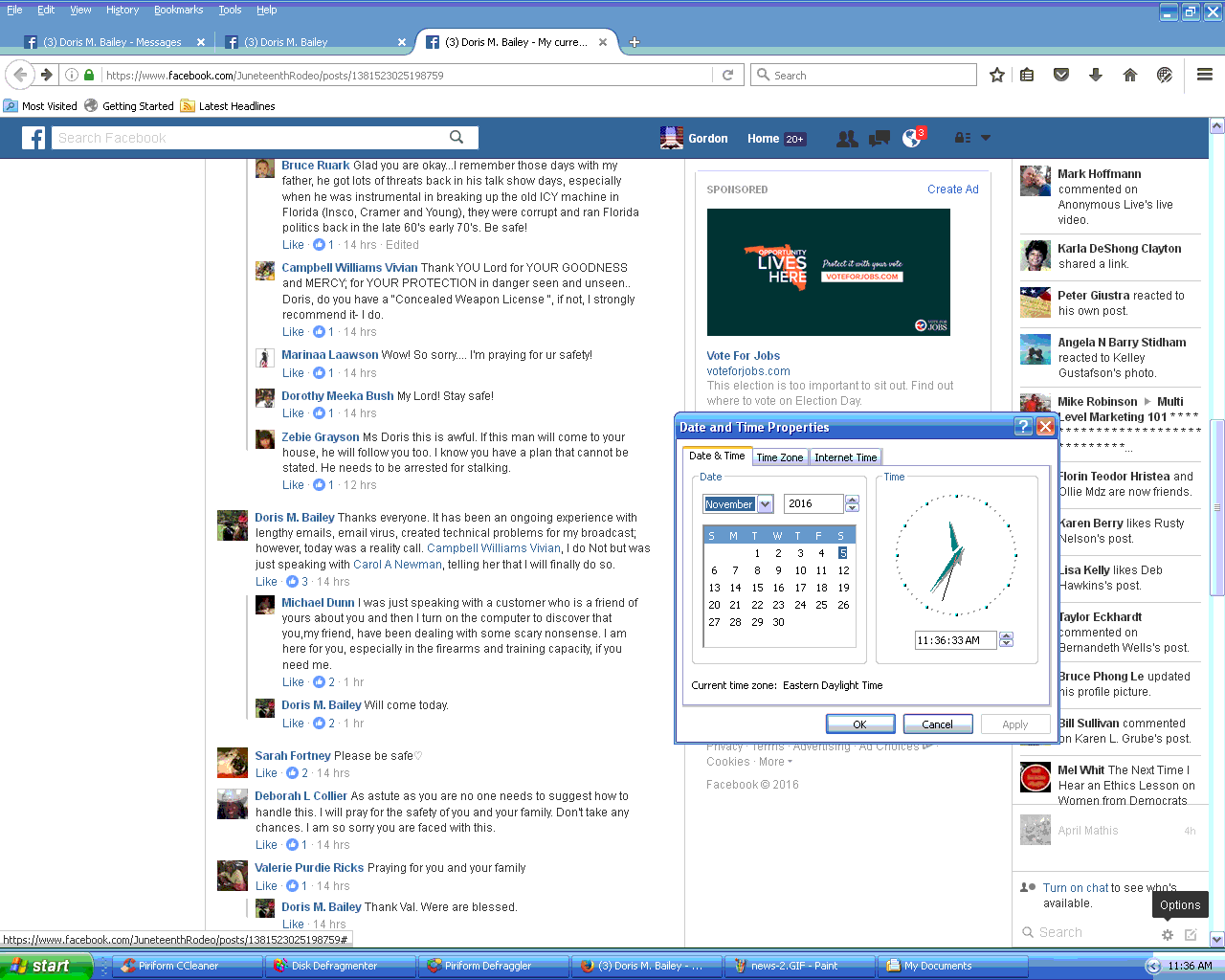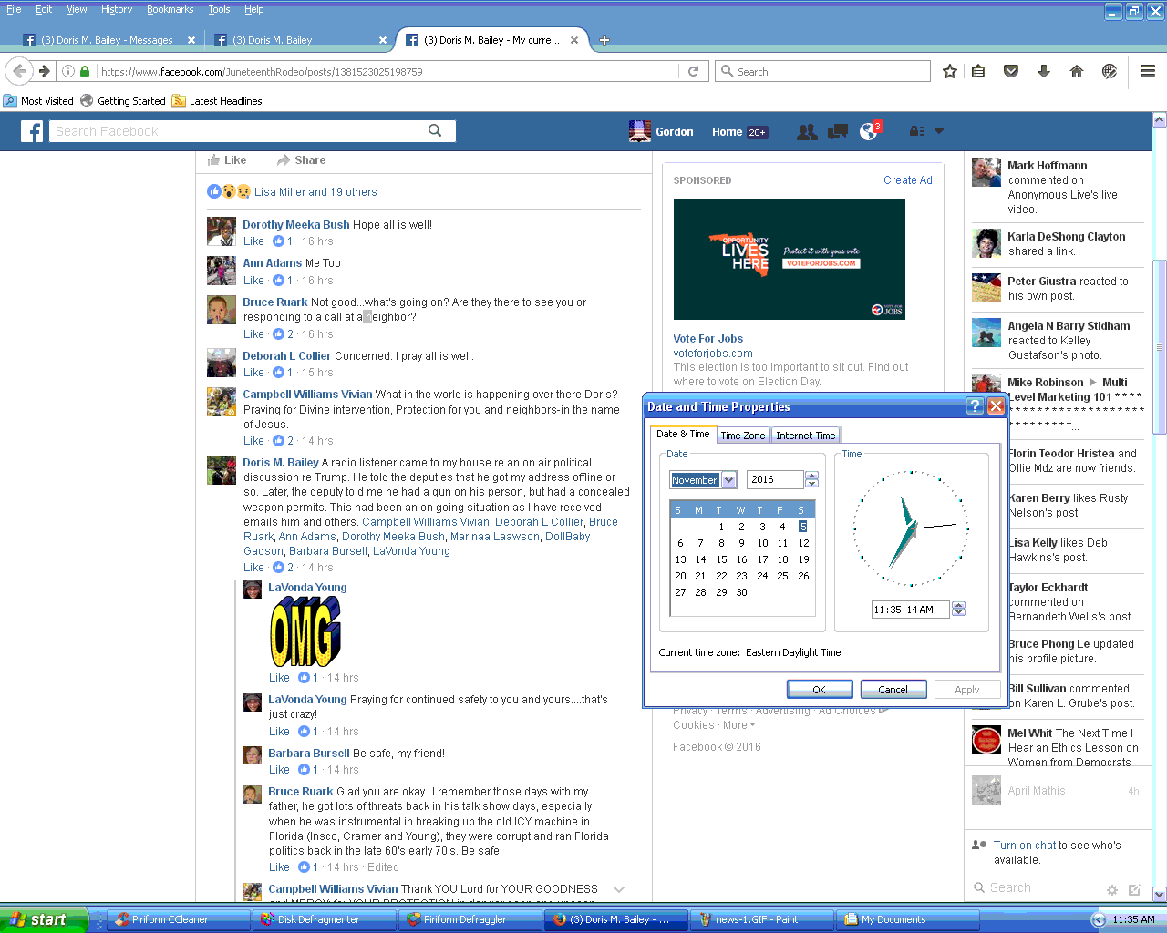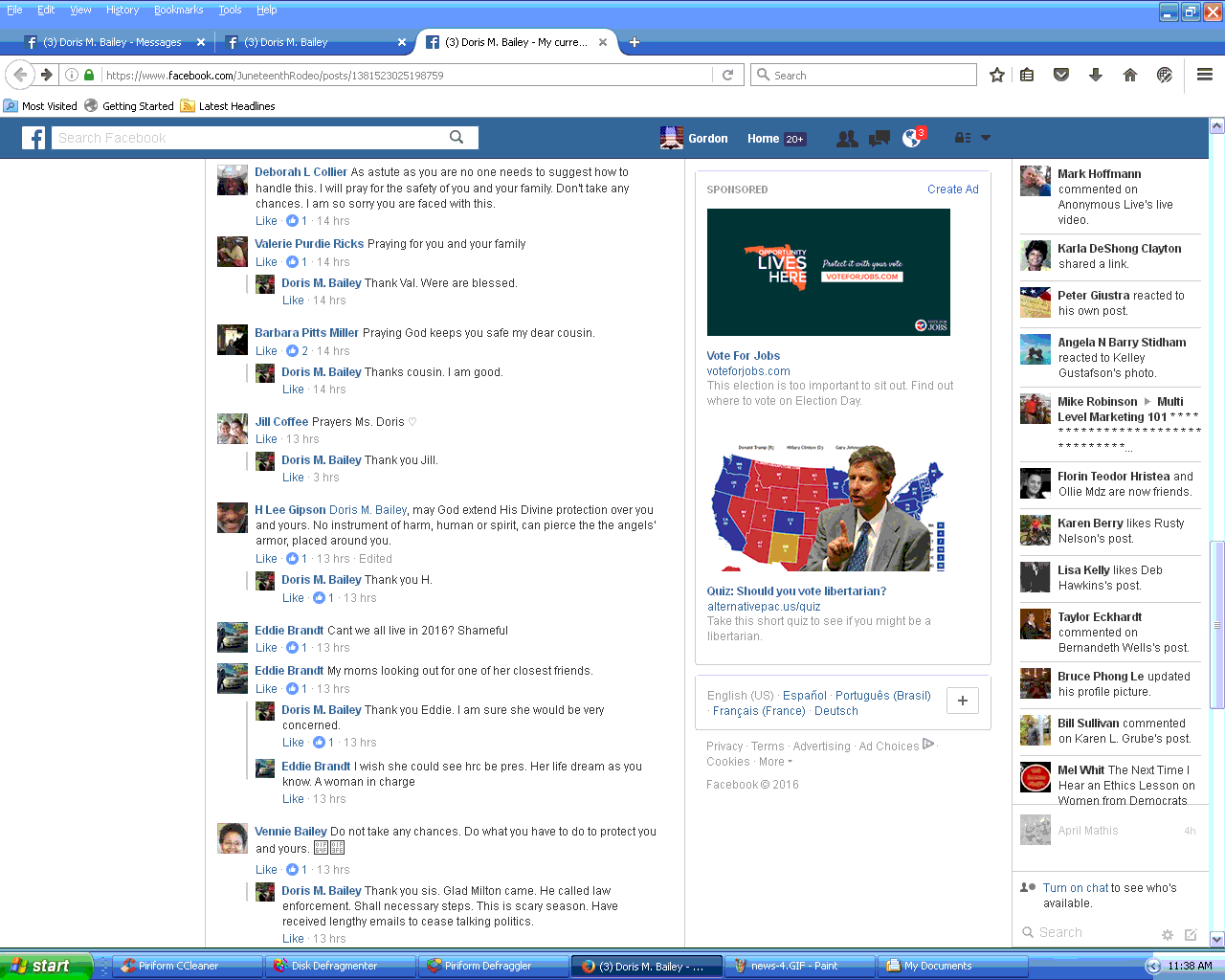 Take a close look at Doris' comment, at the very bottom: "Thank you sis. Glad Milton came. He called law enforcement. Shall necessary steps. This is scary season. Have received lengthy emails to cease talking politics." Did you see that? She accused me of sending her "lengthy" emails with threats or intimidation to "cease talking politics." The 'lengthy' part may be correct (depending on your definition of 'lengthy'), but Doris Moore Bailey is a baldface liar, and I'm calling her on this statement: If I have sent ANYONE a 'threatening' email to coerce or intimidate a person to 'cease' advocacy of their politics, I challenge Ms. Bailey, here and now, to produce such email (or photograph, or screen capture, or even a copy and paste, with a proper time-stamp and email header reference)!!