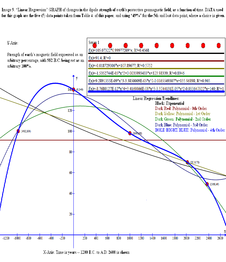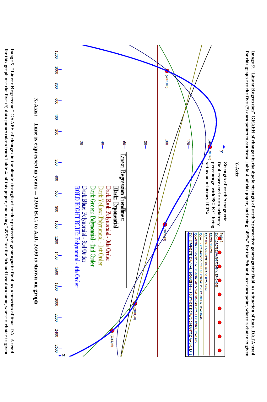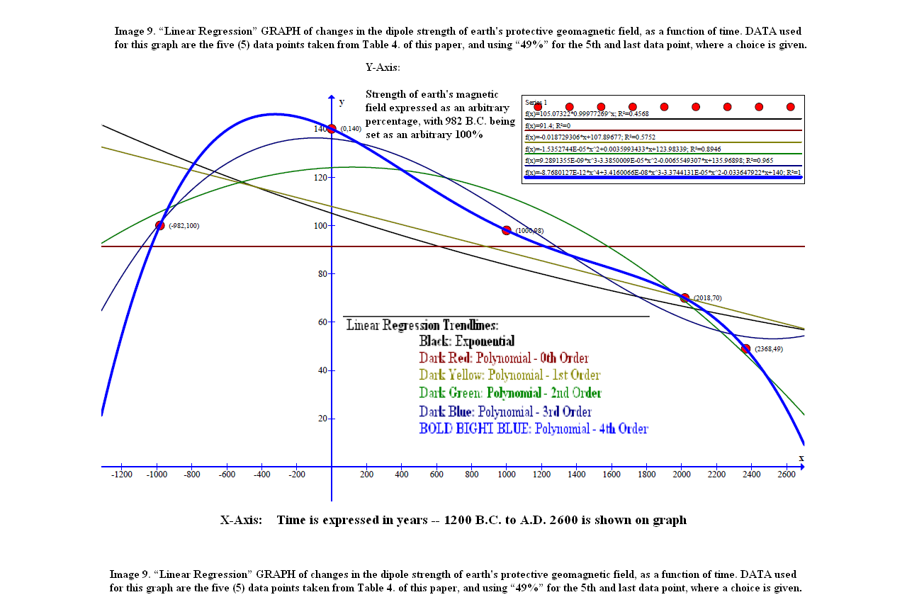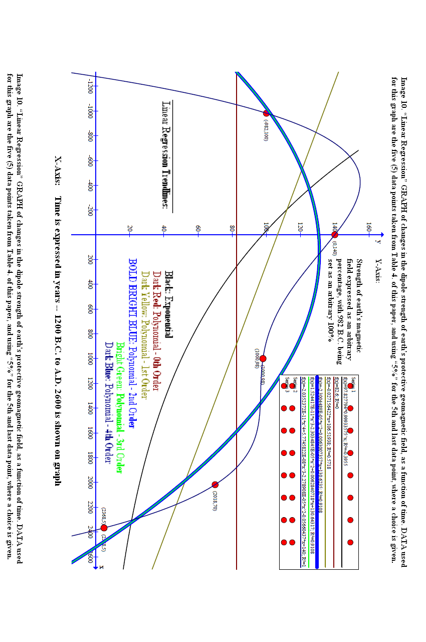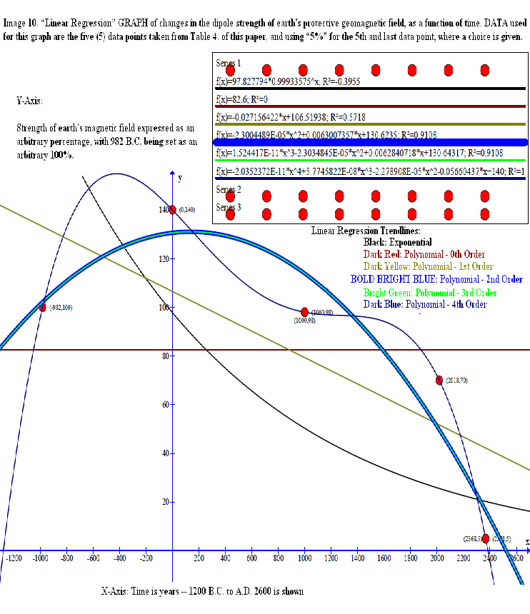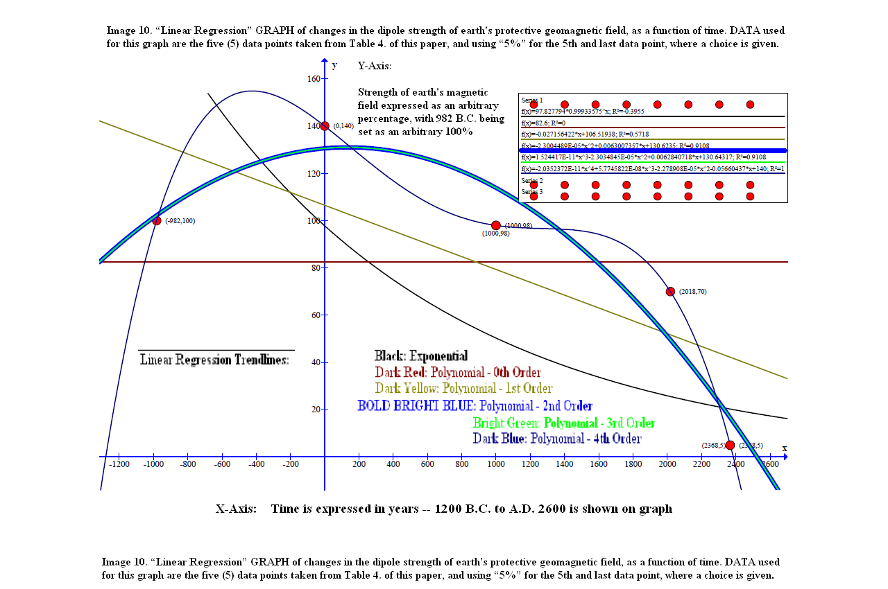 In conclusion, I chose 5 reliable data points for each graph for time periods within the recent several centuries, and showing an approximate “peak” in dipole strength around the time of Christ, so the trendlines generated from these graphs should be reliable for several centuries out into the future.