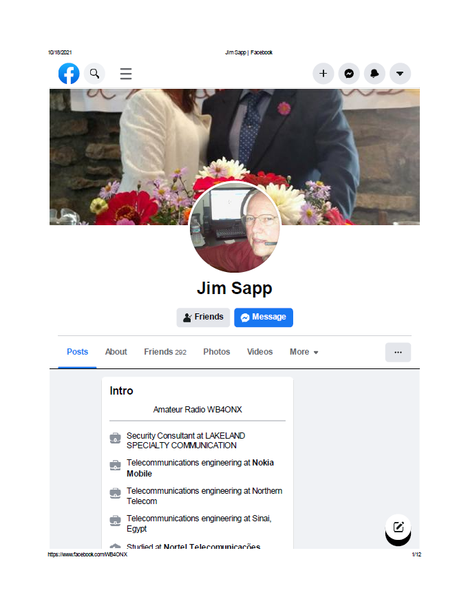 RECAP – ((6)) Jim Sapp, Expert Radio Communications Technician – Telecommunications engineering – OWNER: Lakeland Specialty Communications – Amateur (Ham) Radio operator, call sign: WB4ONX – QUOTE: “Some one today asked my opinions [] on a couple of subjects. ? [] Our power grid is vulnerable to EMF [] attacts[sic].congress let's fix it.”
