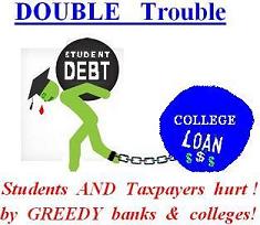 (E) CURRENT METHODS DON'T work: The costs of college (which was once FREE – or very close to it) have now become unaffordable, and, now ALMOST TEN (10%) PERCENT of total U.S. Debt is college debt. This hurts student AND taxpayers. The definition of “insanity” is for lawmakers to keep doing that which DOESN'T work, and yet expecting different results. – Want to crash the dollar, or have you had enough? Maybe try it MY way, for once, and get the bankruptcy equality and loan limits BACK into law. [Almost $2 Trillion in student debt, paid for by tax dollars, divided by slightly more than $20 Trillion total U.S. debt is almost ten (10%) percent =equals= a “WILL crash the dollar” prediction if not stopped!]